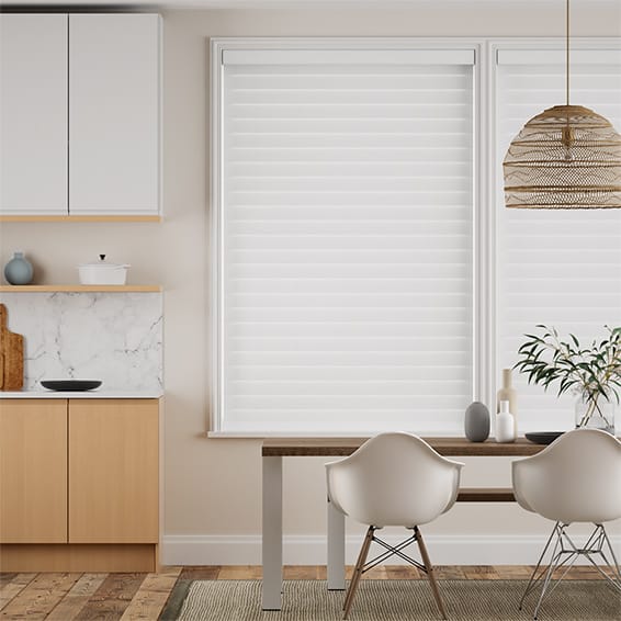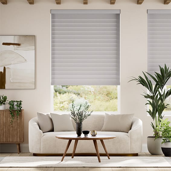 These shades feature dual-layered fabric bands that alternate between sheer and opaque stripes, allowing you to seamlessly adjust natural light while maintaining your desired level of privacy. With a simple pull of the control chain, you can align the opaque bands for full privacy, or shift them to reveal the sheer layers and allow soft filtered light into the room.